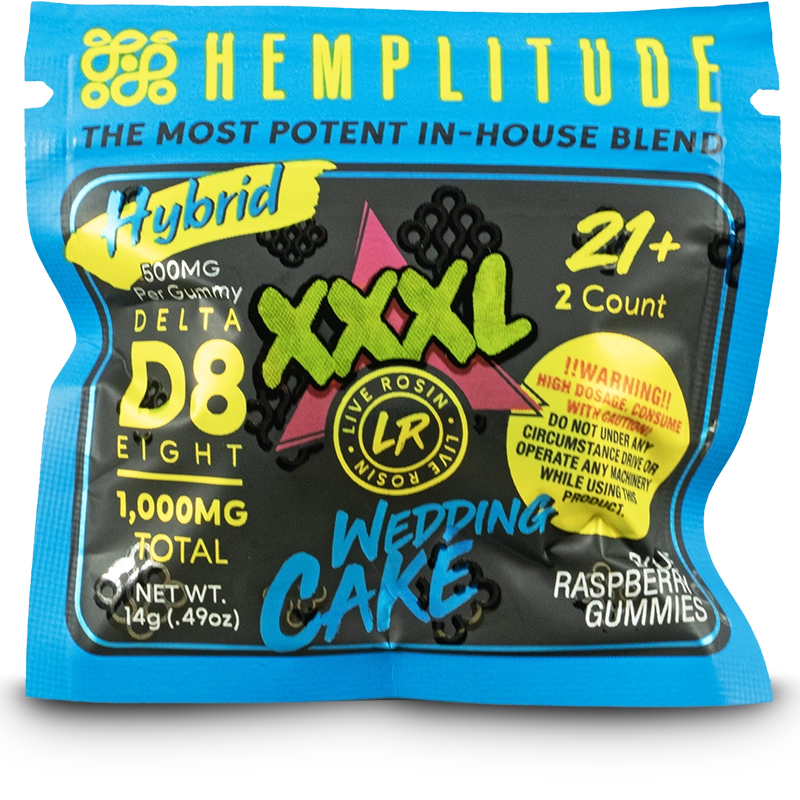 Hemplitude XXXL Gummies take things to a whole new level, transforming your favorite strains into powerful, mouthwatering edibles that deliver unmatched potency and flavor. Each gummy is loaded with 12x more Delta-8 than our originals and enhanced with premium live rosin, giving you the kind of experience that feels almost too strong to be legal. Available in three crave-worthy strain-inspired flavors—Bubba Kush (sour orange), Durban Poison (sour strawberry), and Wedding Cake (sour blue raspberry)—these gummies aren’t just potent, they’re also clean and conscious: 100% vegan, kosher, gluten-free, and crafted with organic ingredients. With only 3 grams of sugar and carbs per gummy, you get all the punch without the guilt. Choose from convenient single packs, six-count pouches, or full 18-count jars and discover why fans everywhere are calling these the ultimate heavy-hitter treat. When it comes to flavor, strength, and satisfaction, Hemplitude XXXL Gummies truly pack the punch.